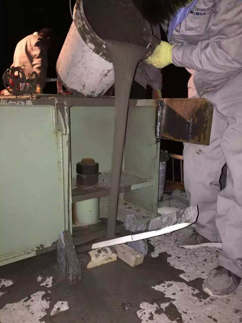 4、浆料按粉料:水=1:0.14(重量比)配制。应先将水加入搅拌桶内,然后逐渐加入称量好的灌浆料,边投料边用电动搅拌枪进行搅拌,直至粉料全部加完,再继续搅拌2-3min,使浆料均匀。搅拌好的浆料应在25min内灌注完毕。