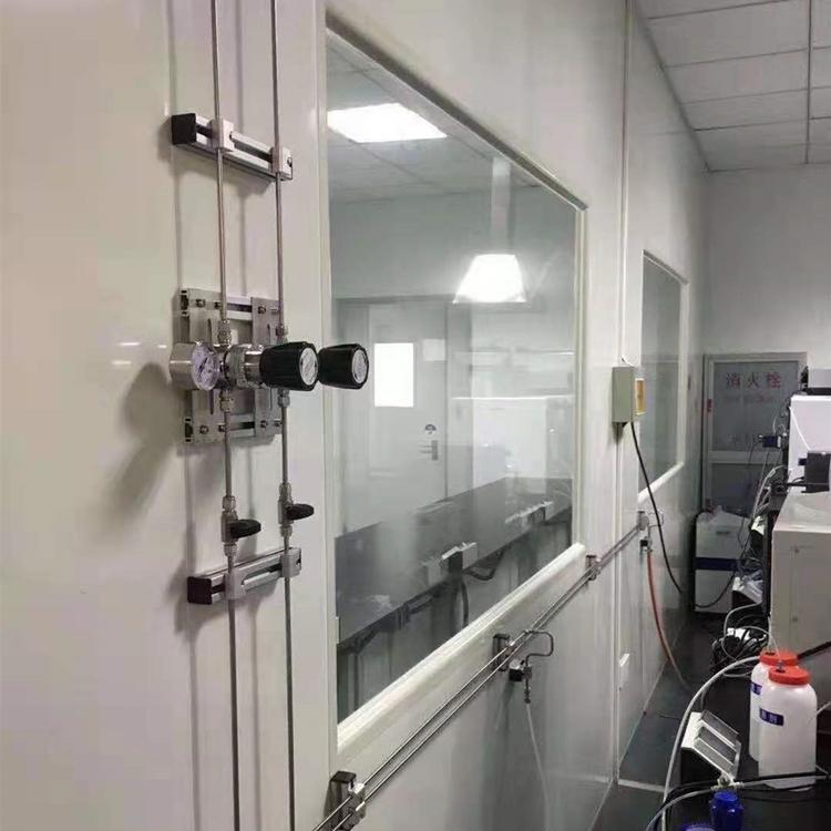气瓶内气源配置低压报警系统,当钢瓶气体压力低于设定值时会产生报警提醒操作人员及时更换钢瓶。如产生安全泄漏,气体泄漏探测系统实时监测房间气体浓度并进行声光报警以及事故排风联动切换。