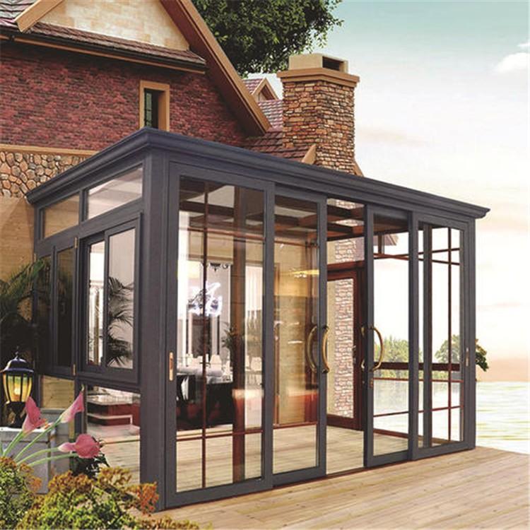 选择阳光房,在门窗性能的选择上要非常重视。由于阳光房的承重力较大,它的边框与普通推拉门不同,采用高级铝合金与钢材,加大壁厚和宽度尺寸,使支撑力更强。门窗使用双层中空保暖玻璃,而屋顶采用钢化玻璃,在玻璃和金属边框中夹有特制的防撞条,特制密封条,可实现防雨、防雪。