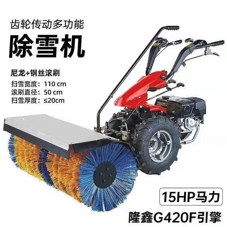 1.手扶式多功能扫雪机采用原装进口汽油发动机为动力,自动行走、倒退,操作人员只需掌握方向即可;