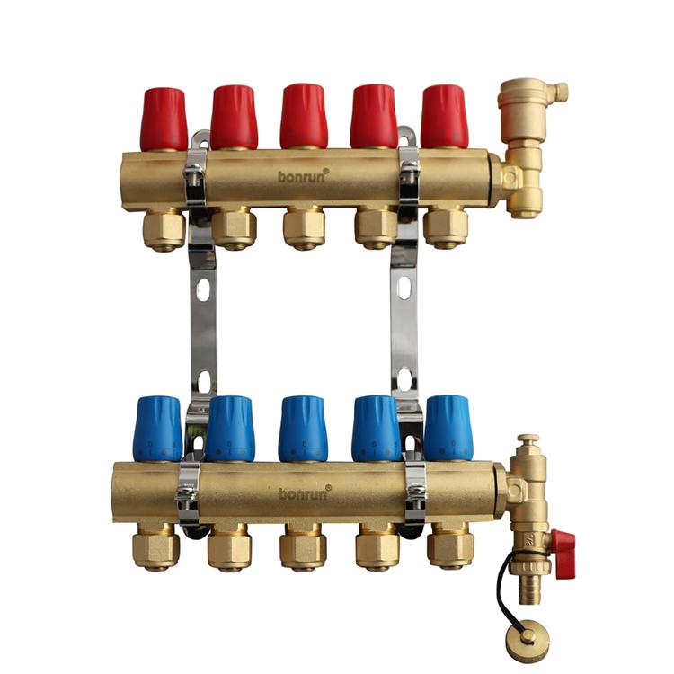 | 用途 | 独立采暖地暖分水器 | 产品特性 | 59黄铜,可做2-10路 |