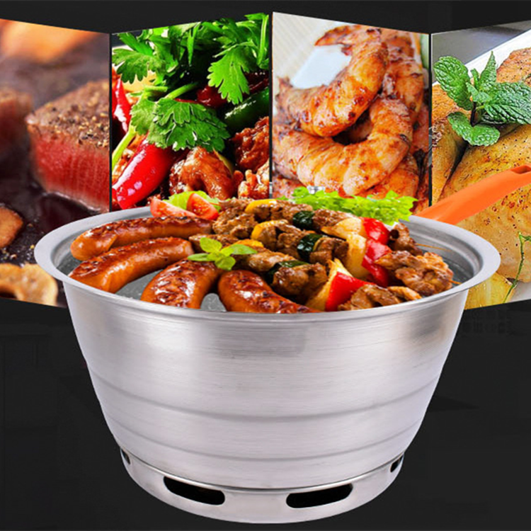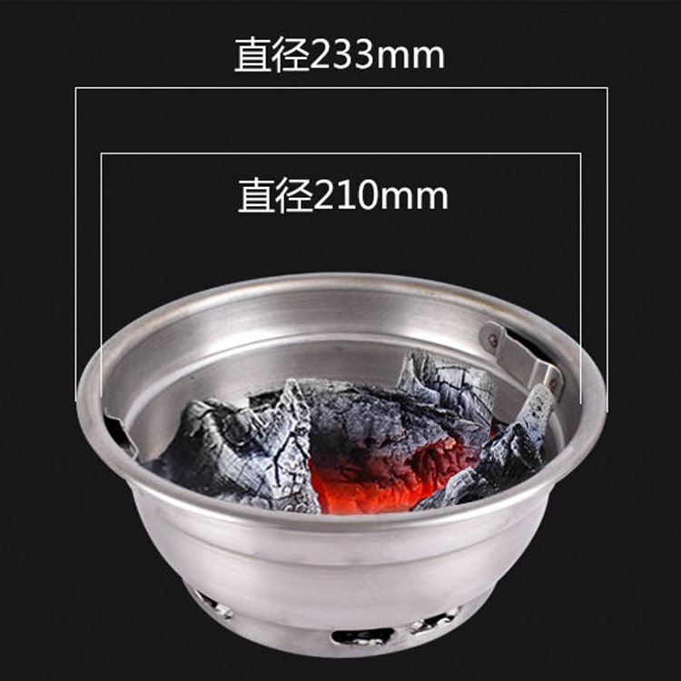 不锈钢大炭盆:耐烧稳定性好,不生锈,耐用。底部通风口设计,让火力精炼集中,烧烤出美味食物!
