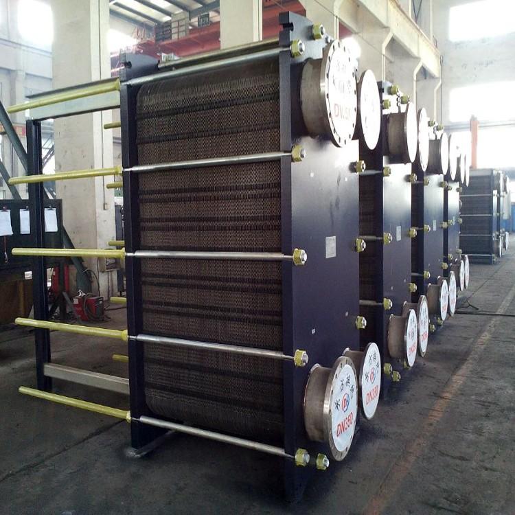 板式换热器是由一系列具有一定波纹形状的金属片叠装而成的一种新型高效换热器。各种板片之间形成薄矩形通道,通过板片进行热量交换。它与常规的管壳式换热器相比,在相同的流动阻力和泵功率消耗情况下,其传热系数要高出很多,在适用的范围内有取代管壳式换热器的趋势。