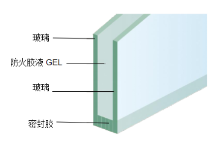 由两层玻璃原片(特殊需要也可用三层玻璃原片),四周以特制阻燃胶条密封。中间灌注的防火胶液,经固化后为透明胶冻状与玻璃粘接成一体。