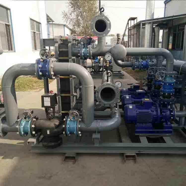 板式换热站是把一次网得到热量,自动连续的转换为用户需要的生活用水及采暖用水。即热水(或蒸气)从机组的一次侧入口进入板式换热器进行热交换后,从机口一次侧出口流出;二次侧回水经过过滤器除去污垢后,通过二次侧循环水泵进入板式换热器进行热交换,生产出与采暖、空调、地板采暖或生活用水等不同温度的热水,以满足用户的需求。