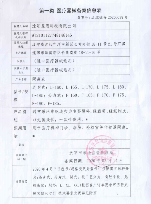 | 产品 | 医用隔离防护服 | 可售卖地 | 吉林省 辽宁省 黑龙江省 |