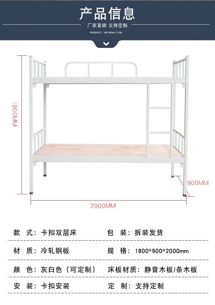 | 品名 | 上下铺铁床 | 应用范围 | 学校、员工宿舍、公寓等 |