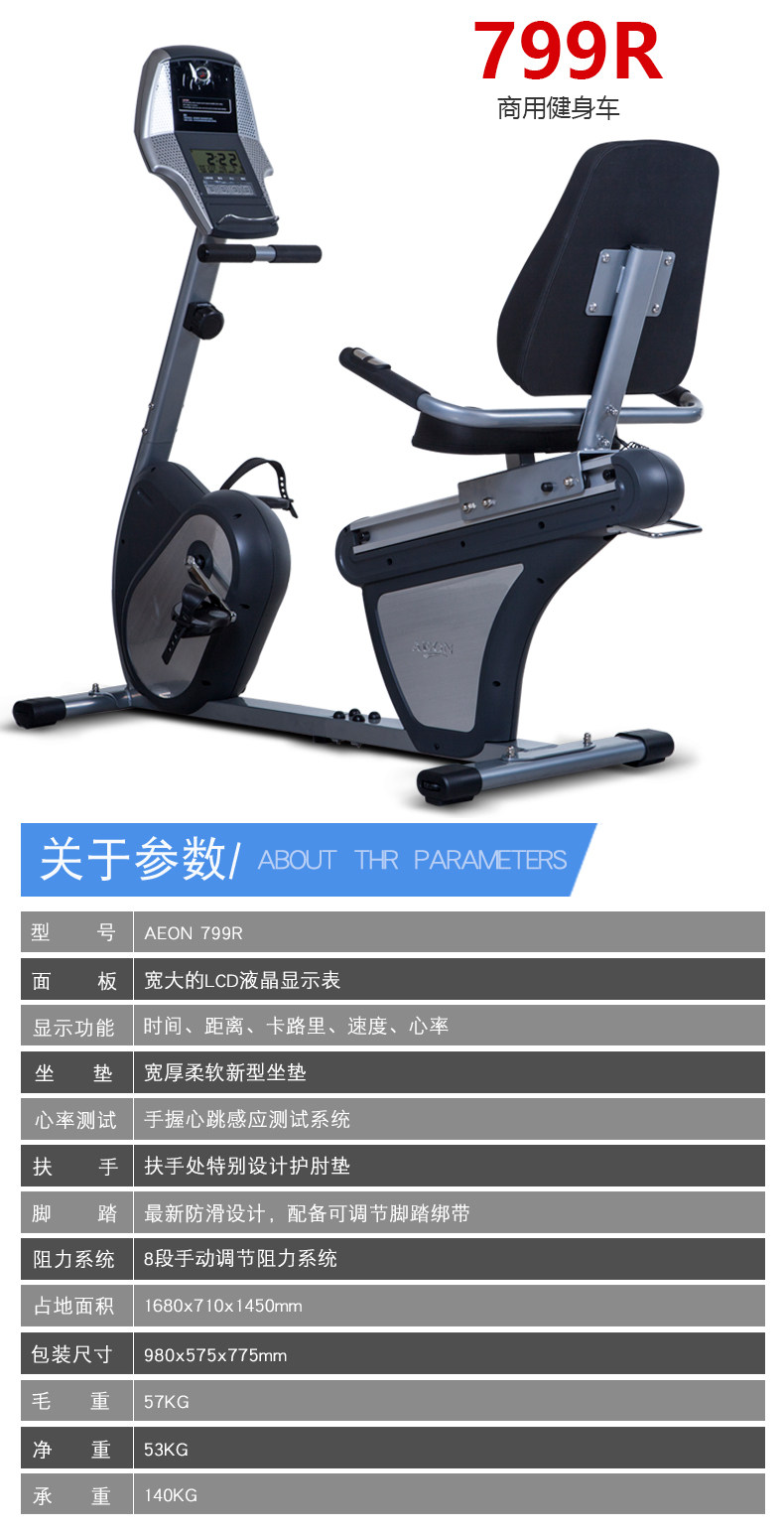 AEON正伦799R卧式健身车家用室内静音健身器材脚踏车磁控车