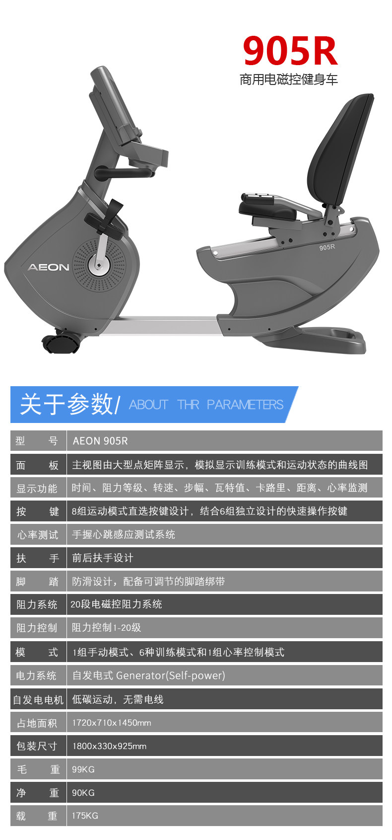 AEON正伦原装进口905R卧式车商用自发电卧式健身车健身器材