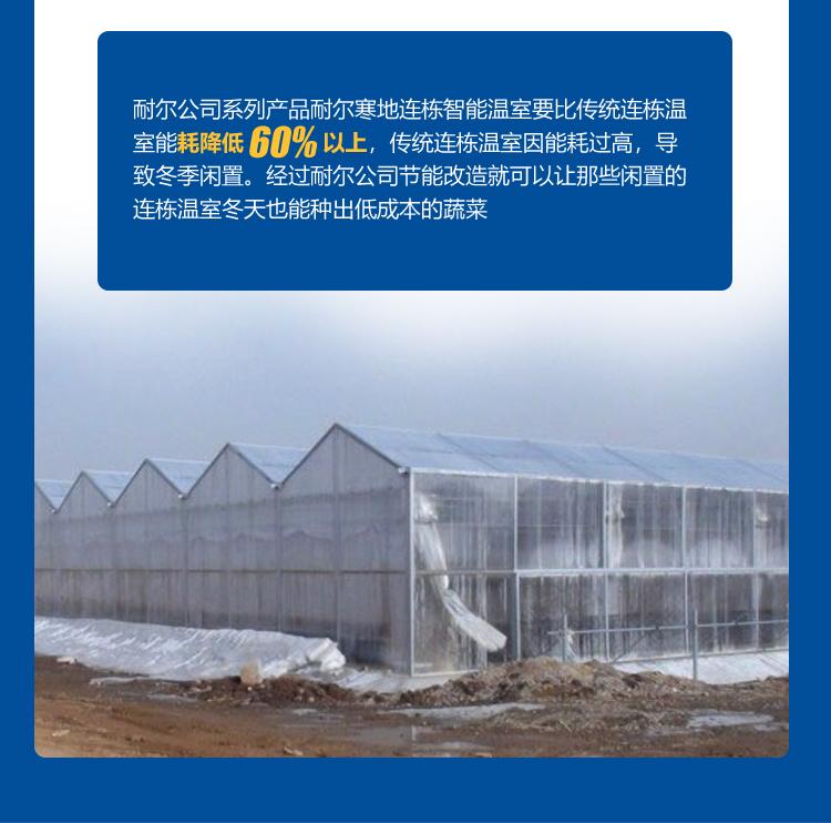 单层智能温室、寒地集热双层智能温室、冷棚、连栋塑料大棚、连栋智能温室、日光圈舍| 品牌 | 耐尔 | 品名 | 连栋智能温室 |