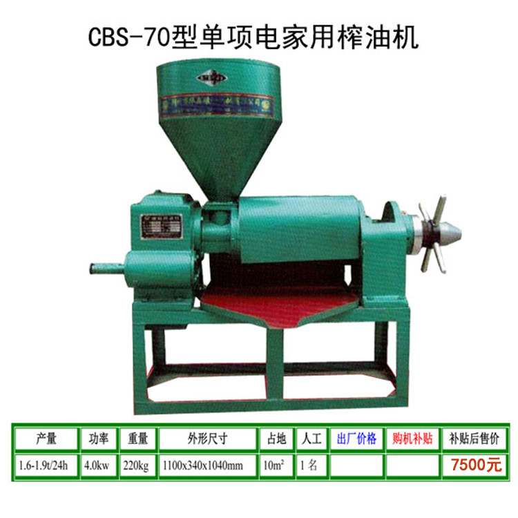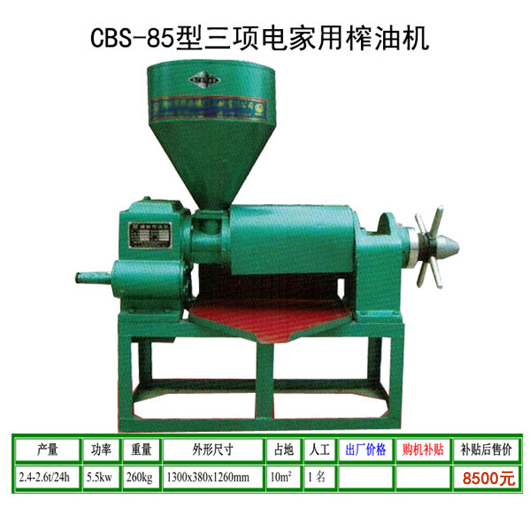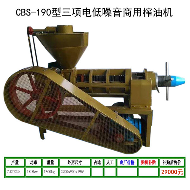 不论全国各地气候条件差异,真正实现开机即可出油的效果,本机采用了强制下料装置,送料均速,压榨速度快,能广泛压榨花生、大豆、油菜籽、芝麻、油葵、胡麻籽、山茶籽、棉籽、花椒籽、核桃仁、桐籽、蓖麻、杏仁等多种油料作物。