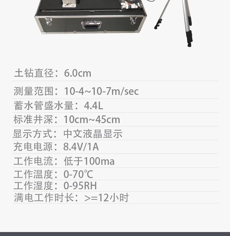 | 饱和导水率的测量范围 | 10-2~10-5cm/sec | 仪器箱外形 | 120×45×14 |