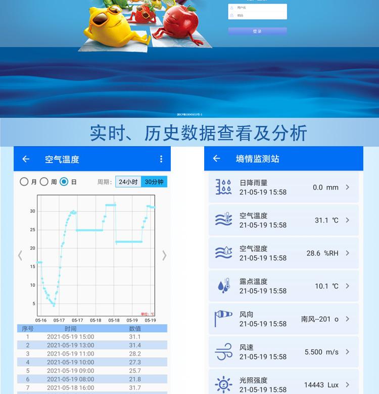 智能生态气象监测系统是根据国际气象组织(气象组织)气象观测标准开发的多因素自动观测站,它能监测风向、风速、温度、湿度、气压、降雨、土壤温湿度等常规气象要素,具有自动记录、数据通讯等功能,由气象传感器、气象数据记录仪和气象环境监测软件组成,广泛应用于工农业生产、旅游、科研、气象等城市环境监测领域。