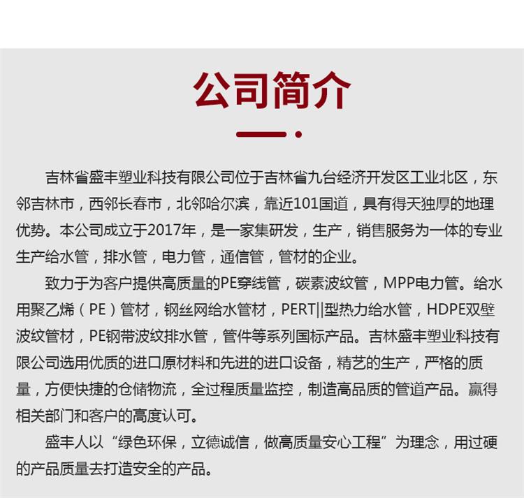 主营:pe给水管|pe钢丝网骨架给水管|pe双臂波纹排水管|pe钢带波纹排水管|mpp电力管|cpvc电力