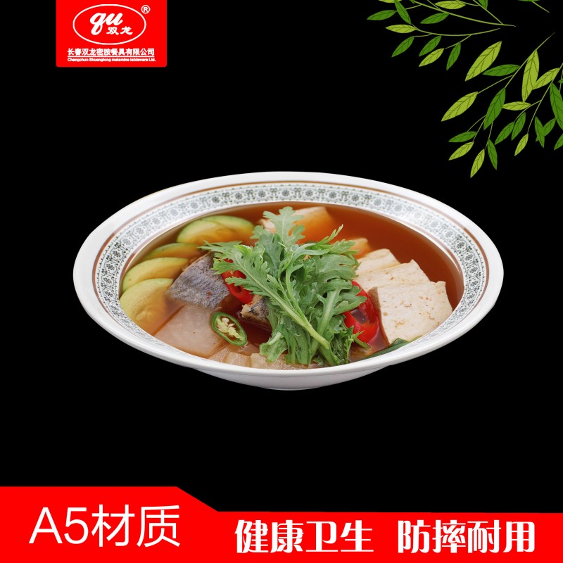 产品全部采用密胺原料,产品质地光滑,即具陶瓷的外观,同时具有超强的硬度,抗摔,耐冲击性能良好,使用寿命长,色泽鲜艳,耐高温120℃,耐低温-30℃,适合在120℃以下洗碗机和消毒柜中使用。同时,可以根据不同客户要求来样开模,设计颜色多样的贴花图案,也可以将单位标识印在餐具上起到广告宣传作用,凸出企业形象。