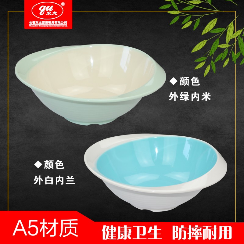 产品全部采用密胺原料,产品质地光滑,即具陶瓷的外观,同时具有超强的硬度,抗摔,耐冲击性能良好,使用寿命长,色泽鲜艳,耐高温120℃,耐低温-30℃,适合在120℃以下洗碗机和消毒柜中使用。同时,可以根据不同客户要求来样开模,设计颜色多样的贴花图案,也可以将单位标识印在餐具上起到广告宣传作用,凸出企业形象。