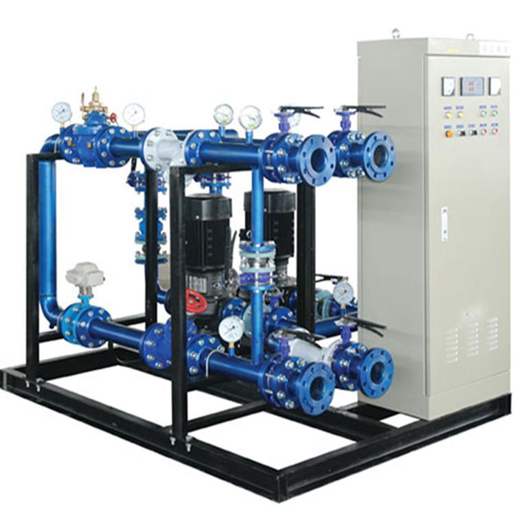 高层直连供暖机组,是在原高低区供暖运行参数、定压大小、运行方式等全维持不变的情况下,将高层供暖系统与原低区供暖系统直接相连,通过PLC程字控制加压泵将低区供暖系统热水加压到高层顶部,组成上供下回、下供上回、分户计量、地板辐射等闭式循环系统。