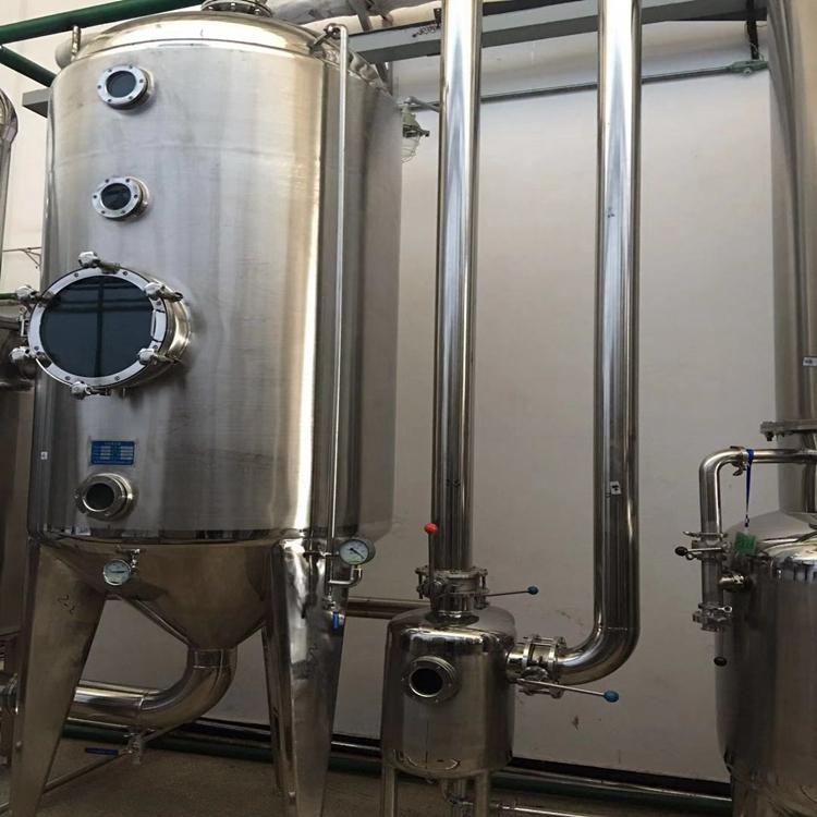 双效蒸发器,适用于制药、食品、乳品、化工等液体物料的浓缩及有机溶剂的回收。 由一效加热器、一效蒸发室、二效加热器、二效蒸发室和冷凝回收器及连接管线阀门等组成。采用外循环负压操作,蒸发速度快。同时本设备喷料管设定特殊角度,对易发泡类、热敏性物料也适用。机组中凡与物料接触部分均采用不锈钢制作,具有良好耐腐蚀性,整个操作过程在密闭状态下进行,符合GMP标准。