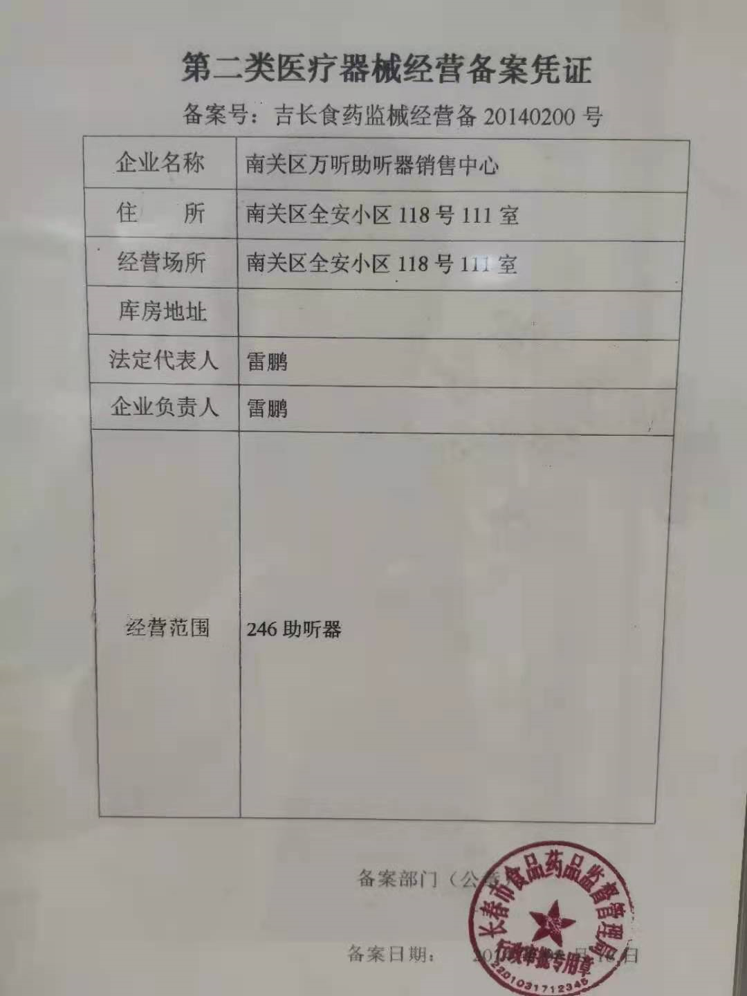 听力验配中心地址:长春市南关区全安小区118号111室