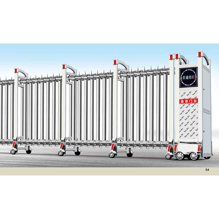 采用卧式铰接结构,上二下三五排卧式铰接,采用精抛不锈钢材质,大主料坚实耐用,这款是加厚底板,控制器有限位开启,限位停止,遇阻回退功能;头角都带有反光片,夜间车辆进出增大安全性。适用于学校、企业、机关、大型工厂、体育场馆等场所