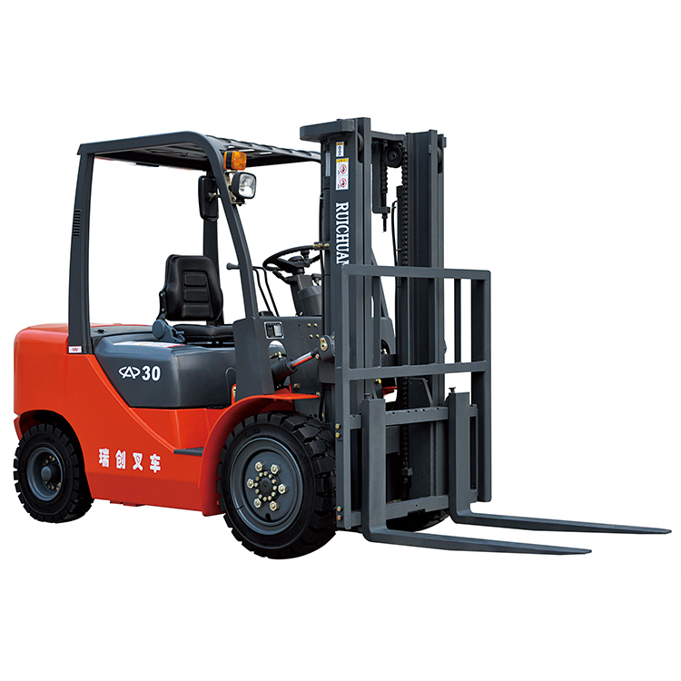 叉车的技术参数是用来表明叉车的结构特征和工作性能的。主要技术参数有:额定起重量、载荷中心距、最大起升高度、门架倾角、最大行驶速度、最小转弯半径、最小离地间隙以及轴距、轮距等。