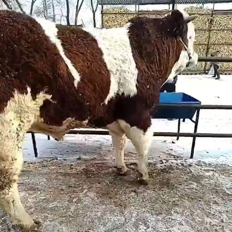西门塔尔牛具有花色漂亮、四肢粗壮、躯体宽厚、后背平直、臀部宽阔、胸部间距宽、头大嘴阔、身腰长、生长速度快等特点,吉林的西门塔尔牛属于双脊牛,给人的感觉就是浑身上下有肉。的缺点就是因为吉林的西门塔尔母牛奶水好,小牛生长速度快,月龄小,刚出生小牛体重基本都在100斤以上,三个月左右体重可达到350斤以上。很多客户选购到家之后处理不当,应激反应大。应激处理好之后进行育肥,增重块、耐粗饲、饲料利用利用率高,综合计算每月增重不低于80斤,成年公牛体重能达到1.5吨,成年母牛体重可达到1吨。