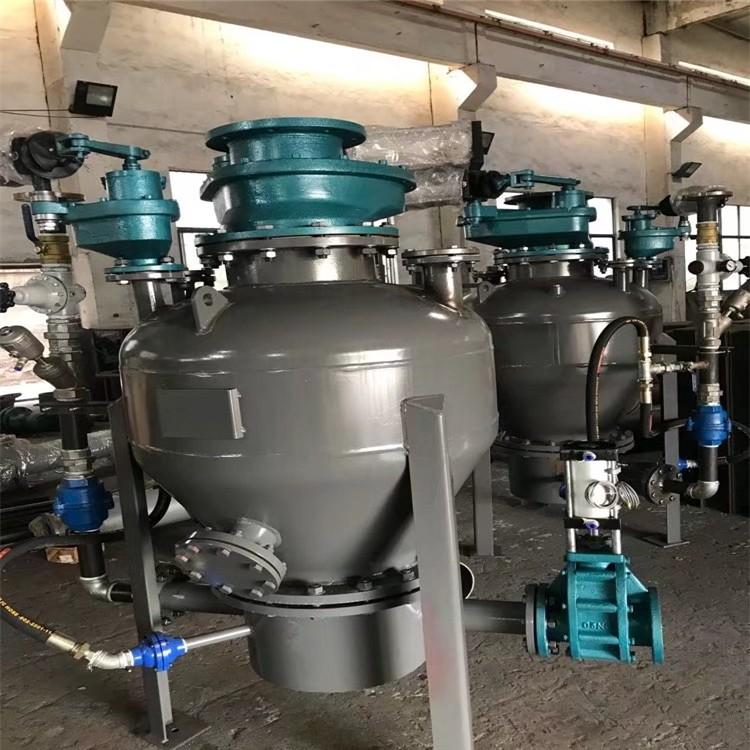 一般用空压机为气源,以密闭的容器作为发送器,称为仓泵或发送罐。气源压少0.5Mpa-0.7MPa,运行压力0.3-0.5Mpa,也可用耐高压的旋转供料器作为发送器来进行输送。
