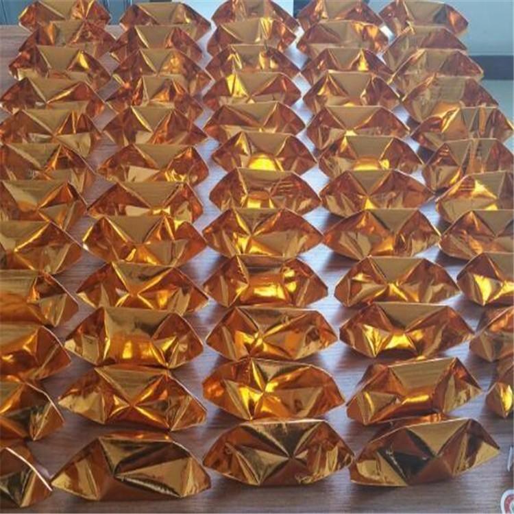 产品优势:本产品体积不大、工作效率高、节省空间;本产品已经折叠成型,为很多不会折叠元宝的人带来方便、更节约时间;本产品颜色鲜艳尺寸大小非常适合感官非常强、光泽度金黄灿灿、反光性强、撑开后立体感强、大小统一。